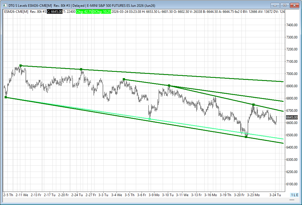 After Trump’s 48-hour deadline, he TACOed. The ES sold off down to 6535.00 on Globex Sunday night, rallied up to 6648.00, and opened Monday’s regular session at 6658.00.