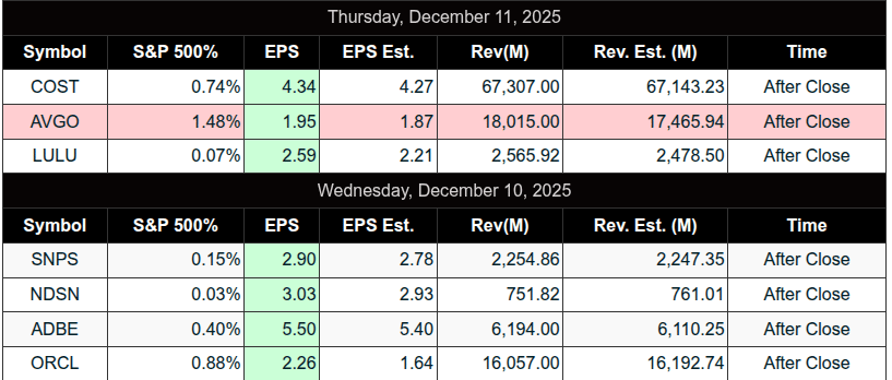 Broadcom (AVGO): Beat estimates, doubled AI chip revenue, but weak outlook sent shares -4% after hours.