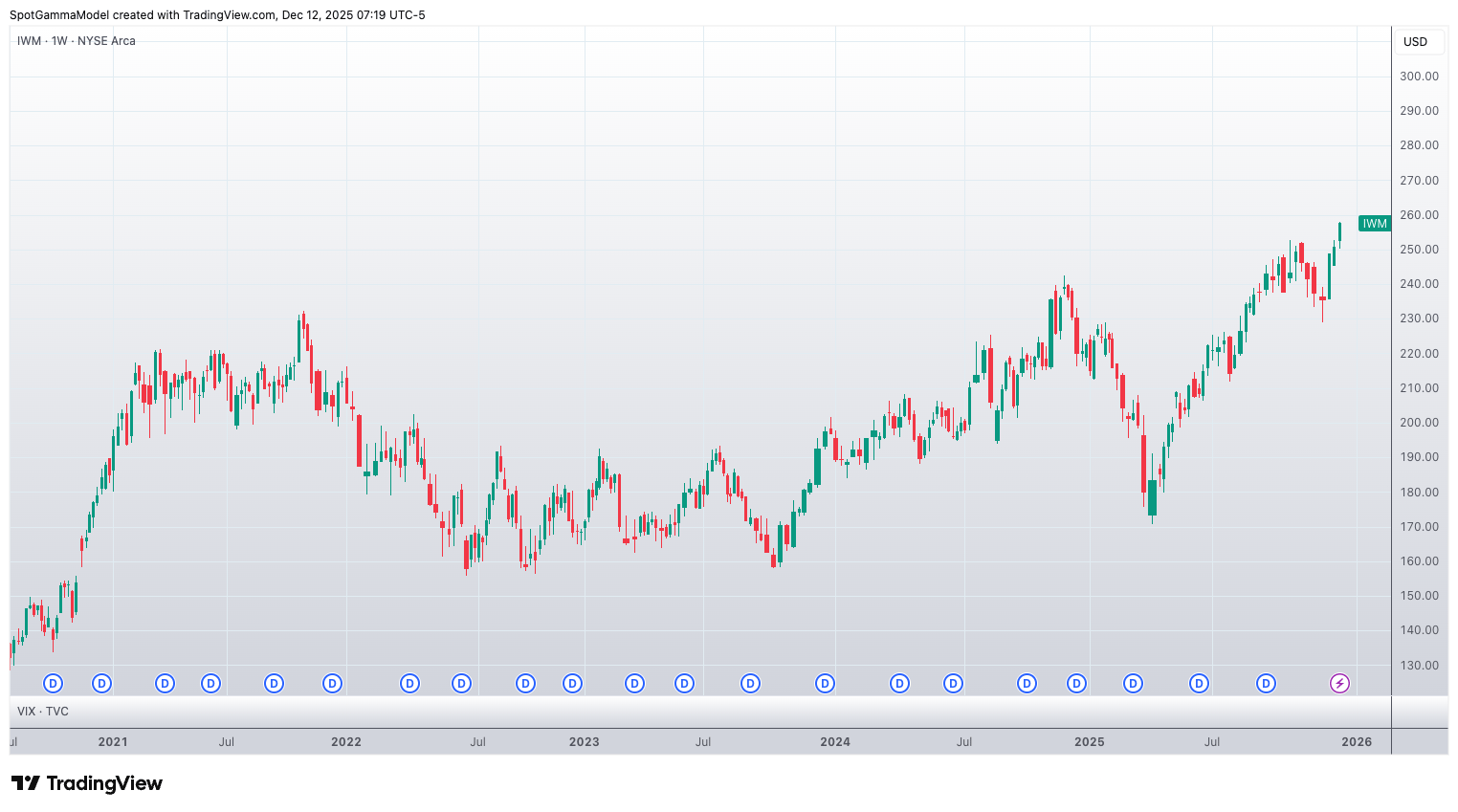 Speaking of trends higher, IWM has broken to fresh ATH's. We think these fresh highs are unlikely to be faded in 2025 as we head into a seasonally bullish time frame, driven by holiday-driven vol contraction.