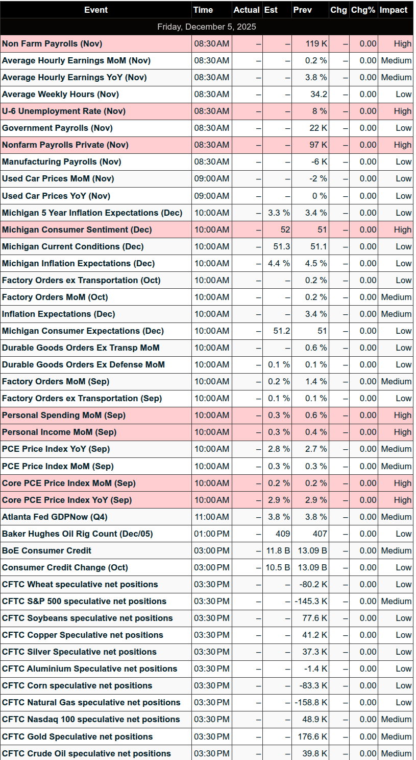 The US jobs numbers (the monthly Employment Situation report from the Bureau of Labor Statistics, covering nonfarm payrolls, unemployment rate, and related metrics) are not being released today, December 5, 2025. Due to a government shutdown earlier in the year, the November 2025 report has been delayed and is now scheduled for Tuesday, December 16, 2025, at 8:30 a.m. ET.