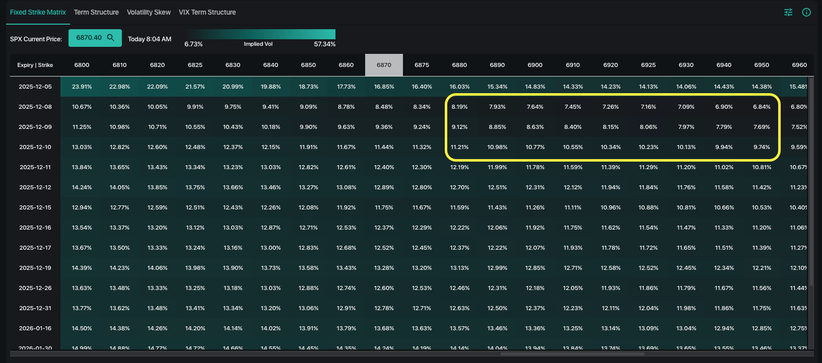 As we discussed in yesterday's Q&A, the pre-FOMC upside is really cheap. 7-handle SPX IV's are about as low as you can get, and thats where >=6,900 strike calls are priced Monday & Tuesday. Given this, we've take a few >=6,900 lotto call positions for Monday & Tuesday on the basis of "sometimes you just buy options because they are so cheap".