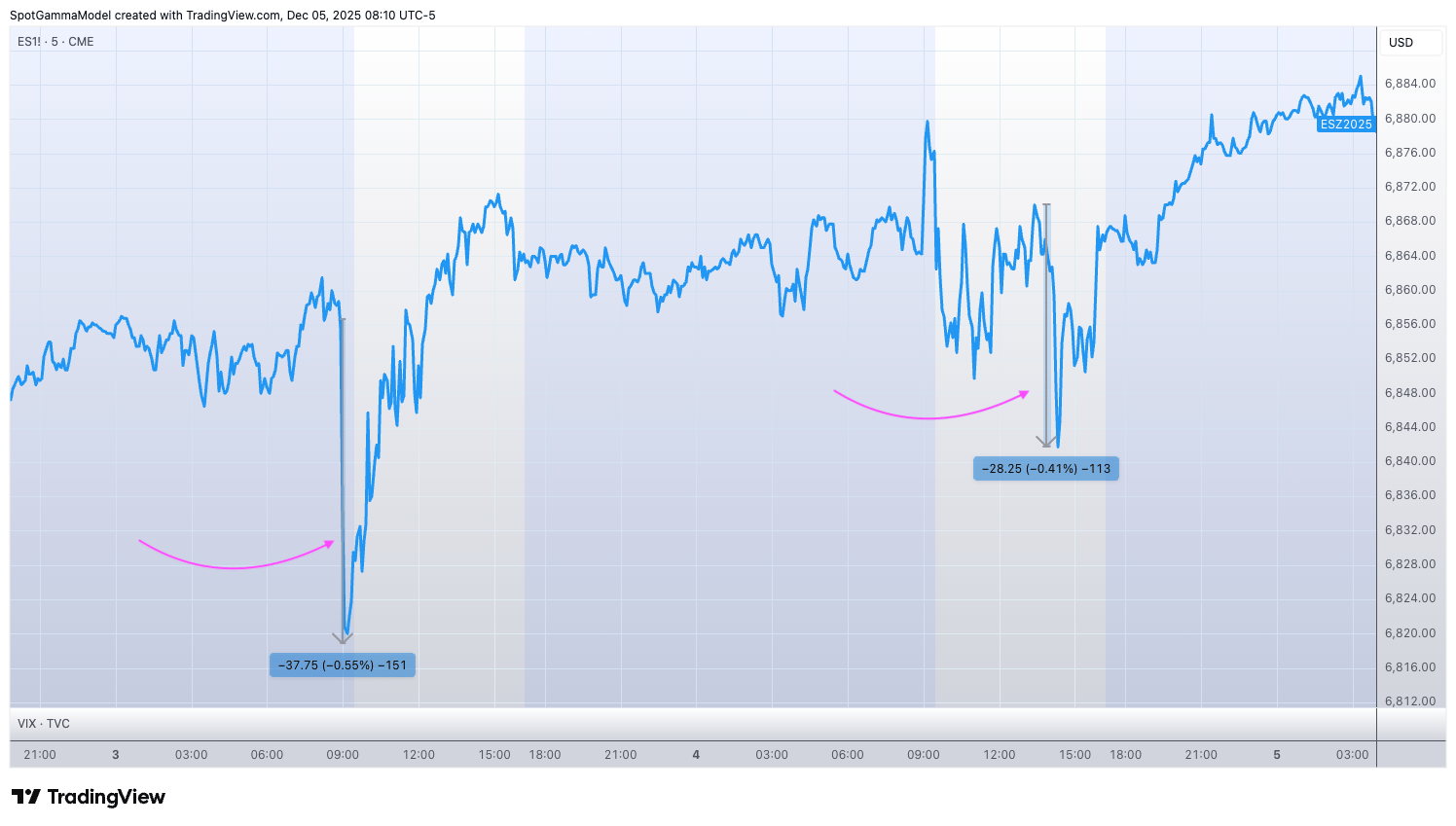 The ES and NQ have been back and filling all week. Aside from all the data, today is also Week 1 December expiration, which should add to the movement. I think it’s going to be another volatile trading day.