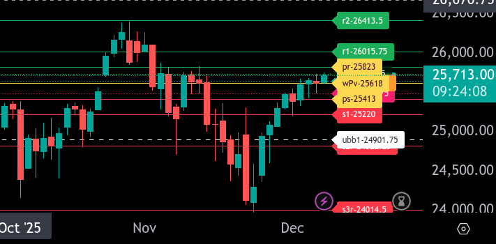 Overall, staying above 25,618.00 favors continued upside toward 25,823.00, while losing this level opens the door for rotation back toward 25,488.75 and lower supports.