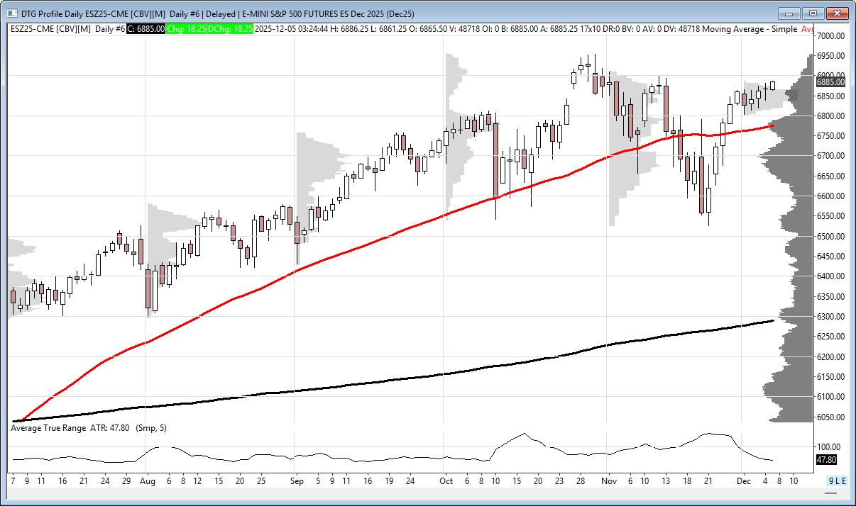 Volatility contracting: ES 5-day ADR down to 50.75 points.