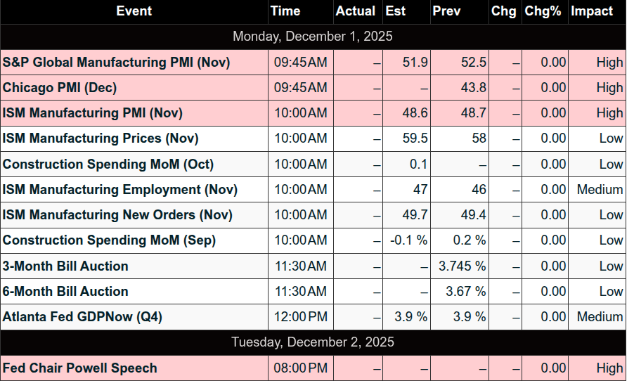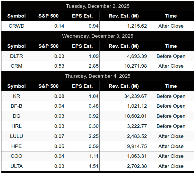 Monday | December 1 | ISM Manufacturing PMI (10:00 AM) | CrowdStrike (CRWD) (~7:00 AM) |