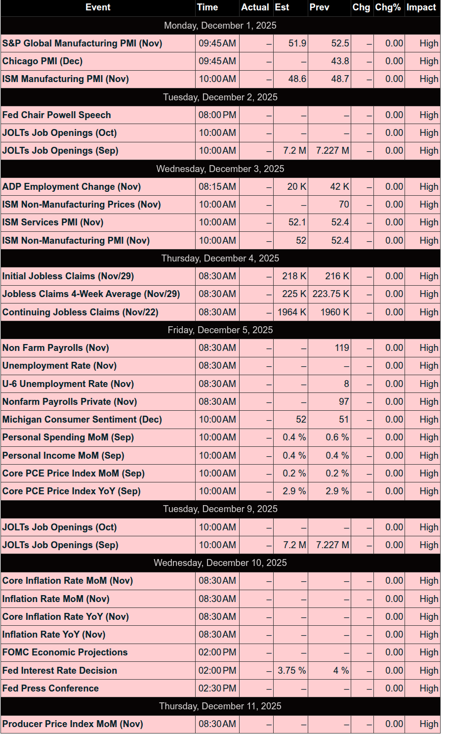 Friday | December 5 | Personal Income & PCE Price Index (8:30 AM) | – (no major large-cap earnings confirmed) |