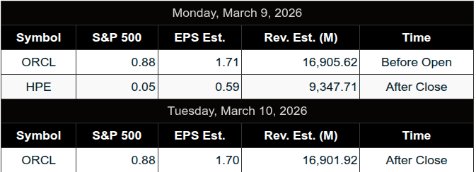 Earnings: No major earnings until Monday after the close (HPE, CASY).