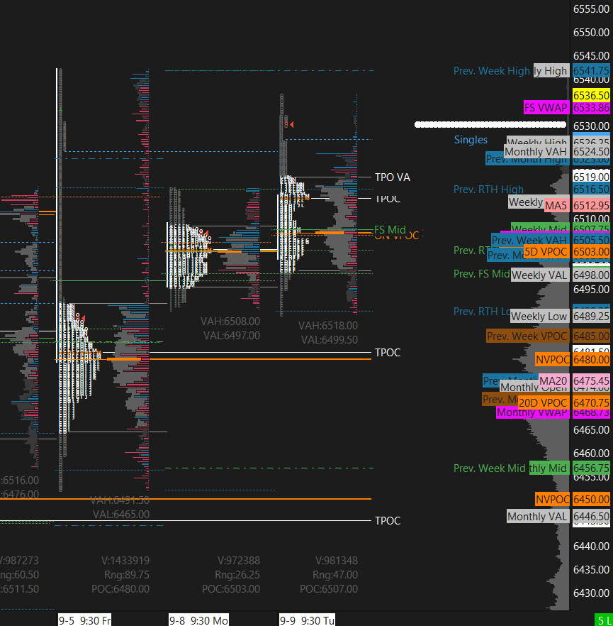 In summary, the September 9 ES session was marked by a choppy Globex, a morning test lower, and a determined recovery that built into the afternoon. The strong buy imbalance into the bell reinforced bullish sentiment, allowing the market to finish firmly above its open and prior close. Traders will look ahead to see if the momentum can sustain into Wednesday’s session.