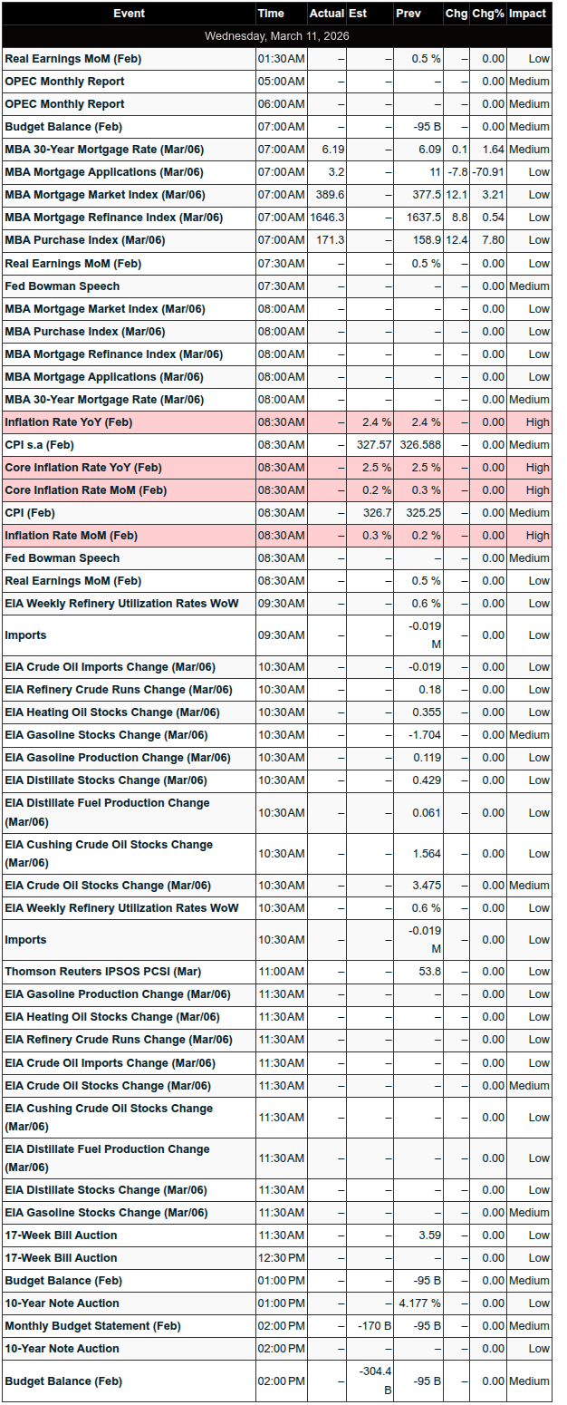 Macro Focus: Markets are watching the Middle East conflict, oil price volatility, and today’s CPI release at 8:30am ET.