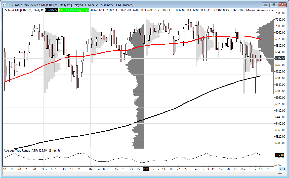 In the end, the trade was up, down, and all around. In terms of the ES’s and NQ’s overall tone, they shook off the early sell-off and spent a good portion of the day going up, but when the headlines about Iran striking Abu Dhabi's fuel storage hit, crude rallied and the index markets sold off. In terms of the ES’s overall trade, volume was lower at 1.84 million contracts traded.