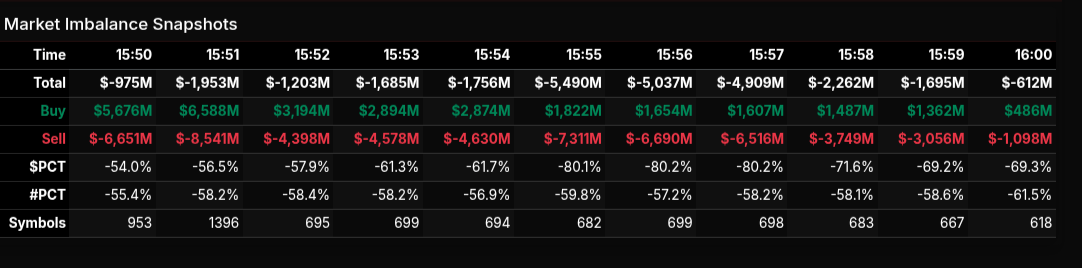 Massive MOC Sell Imbalance: Grew from $1.7B to $5B into the close.