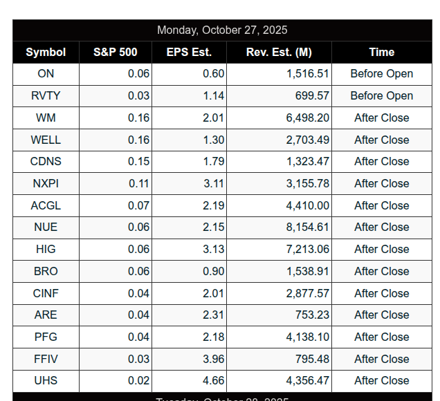 US futures surged over the weekend, fueled by optimism surrounding a likely Fed rate cut (96.7% probability per CME FedWatch), Big Tech earnings, and Thursday's high-stakes Trump-Xi summit—their first meeting since Trump’s first term. All three major US indexes hit all-time highs Friday.Trade Talks: